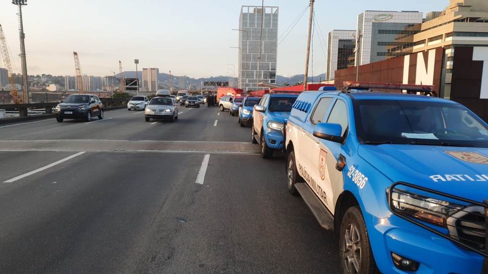 Uma faixa do Viaduto do Gasômetro,no sentido da Avenida Brasil,precisou ser ocupada para a ocorrência policial. De acordo com o Centro de Operações do Rio (COR),até o momento,não houve impacto em outras vias expressas. Mesmo com a interdição,o trânsito no local segue fluindo.