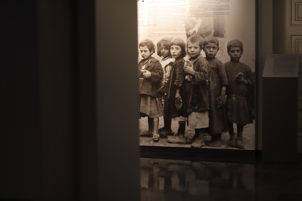 Foto de crianças armênias na Turquia nos anos 1910,exposta no Memorial do Genocídio Armênio — Foto: Vanush Melkonyan / UGAB Brasil