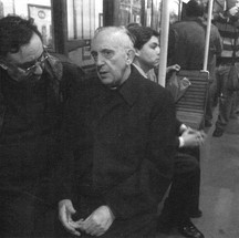 Cardeal Jorge Mario Bergoglio conversa com um homem no metrô de Buenos Aires em 2009 — Foto: AP Photo/Courtesy of Sergio Rubin
