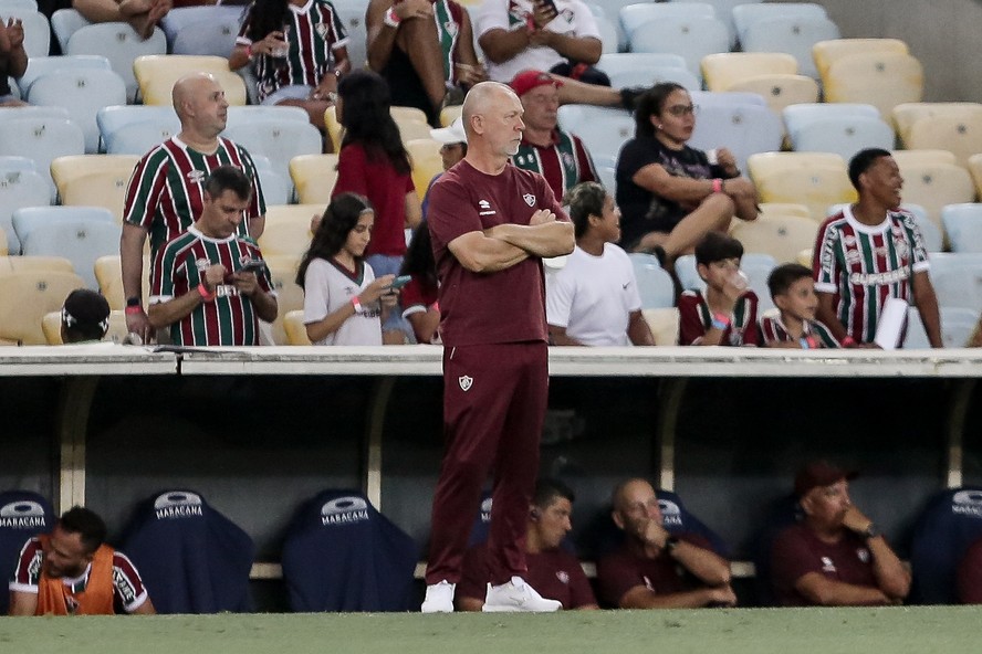 Mano Menezes observador à beira do campo na vitória do Fluminense sobre o Bangu — Foto: Lucas Merçon/Fluminense