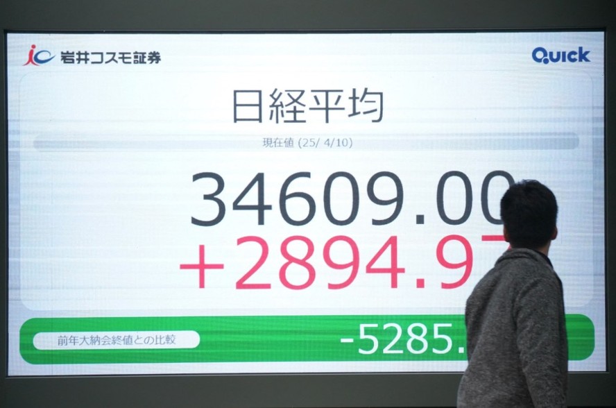 Bolsa de Tóquio: um homem observa um painel eletrônico que mostra os números de fechamento do Índice Nikkei na Bolsa de Valores de Tóquio,em Tóquio — Foto: Kazuhiro Nogi/AFP