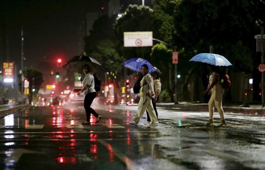 Noite é de chuva no Rio,como na Avenida Presidente Vargas — Foto: Marcelo Theobald / Agência O Globo