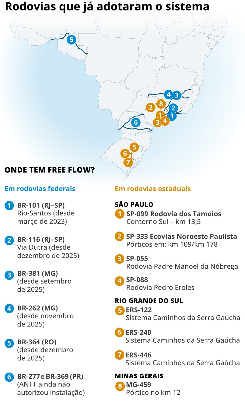 Infográfico sobre rodovias que já adotaram Free Flow — Foto: Editoria de Arte