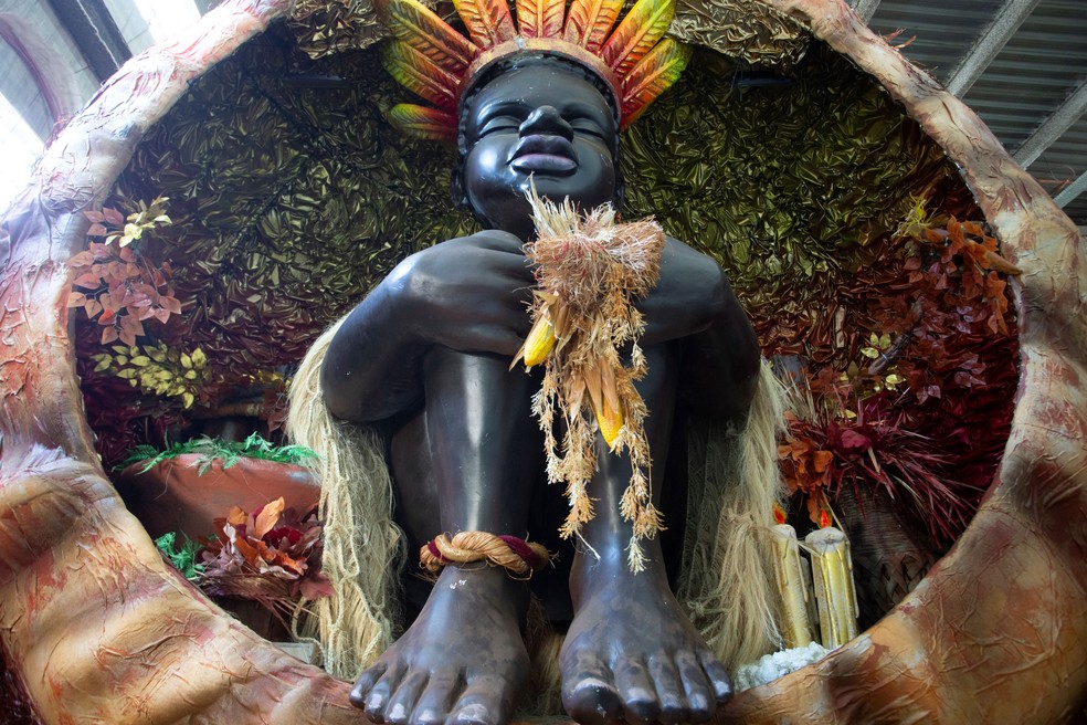A ideia frisada pelo carnavalesco Edson Pereira é que "cultuar orixá é cultuar a natureza" — ele se refere ao enredo "Logun-Edé: santo menino que velho respeita" — mote dessa alegoria em questão,que,por isso,não terá plásticos.