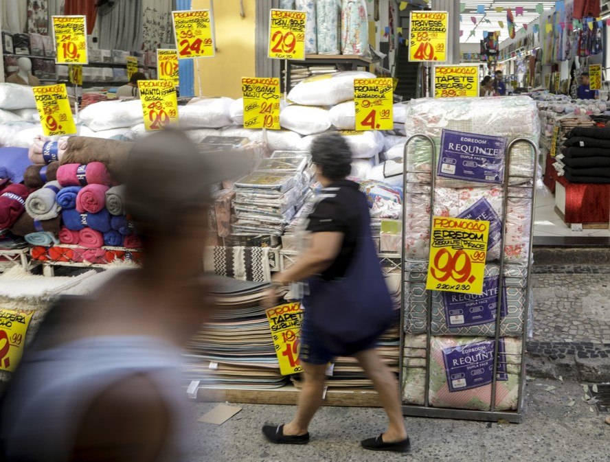 Comércio na Saara,no Centro do Rio: IBGE vai revelar hoje números da economia no primeiro trimestre — Foto: Gabriel de Paiva /Agência O Globo/24-06-2024