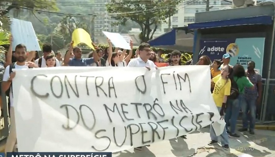 Alunos da PUC fazem manifestação contra o fim do metrô de superfície — Foto: Reproduçao TV Globo