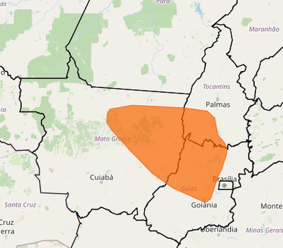 Alerta de 'perigo' de baixa umidade em Goiás,Tocantins e Mato Grosso — Foto: Reprodução
