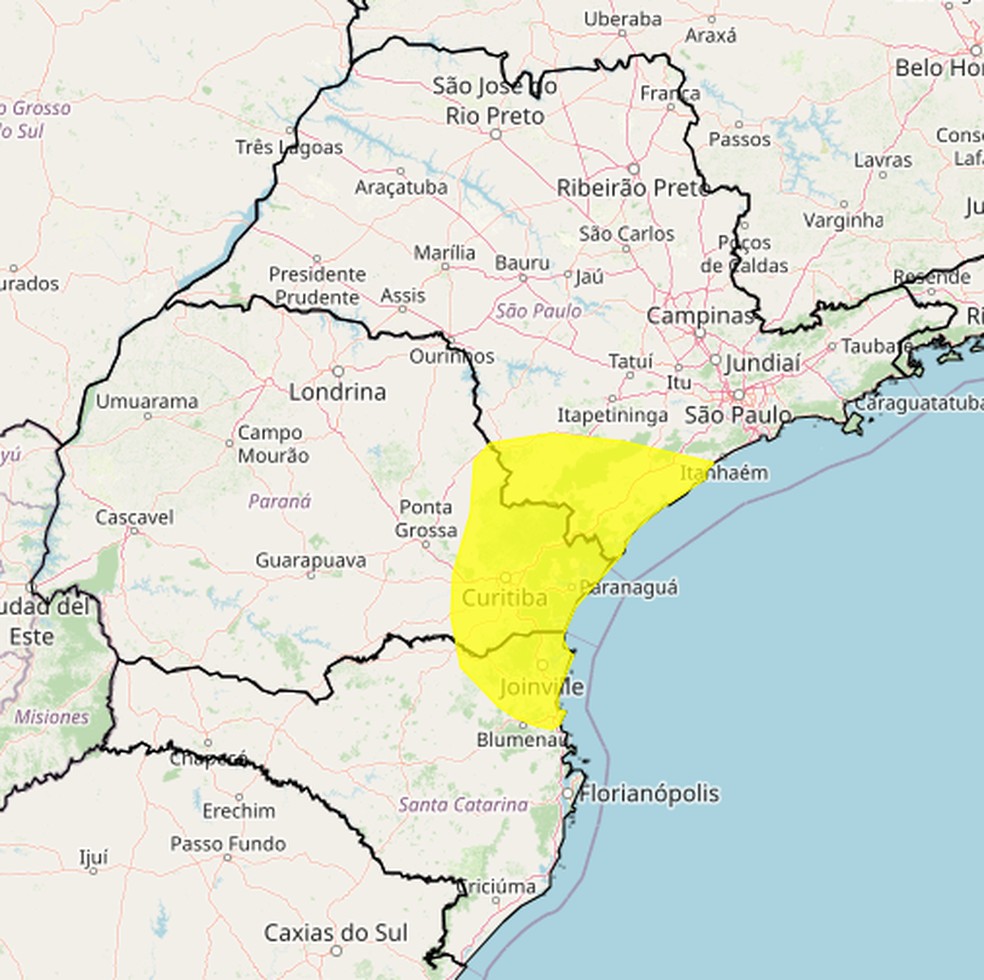 Alerta de 'perigo potencial' de chuvas intensas no PR,SC e SP — Foto: Reprodução