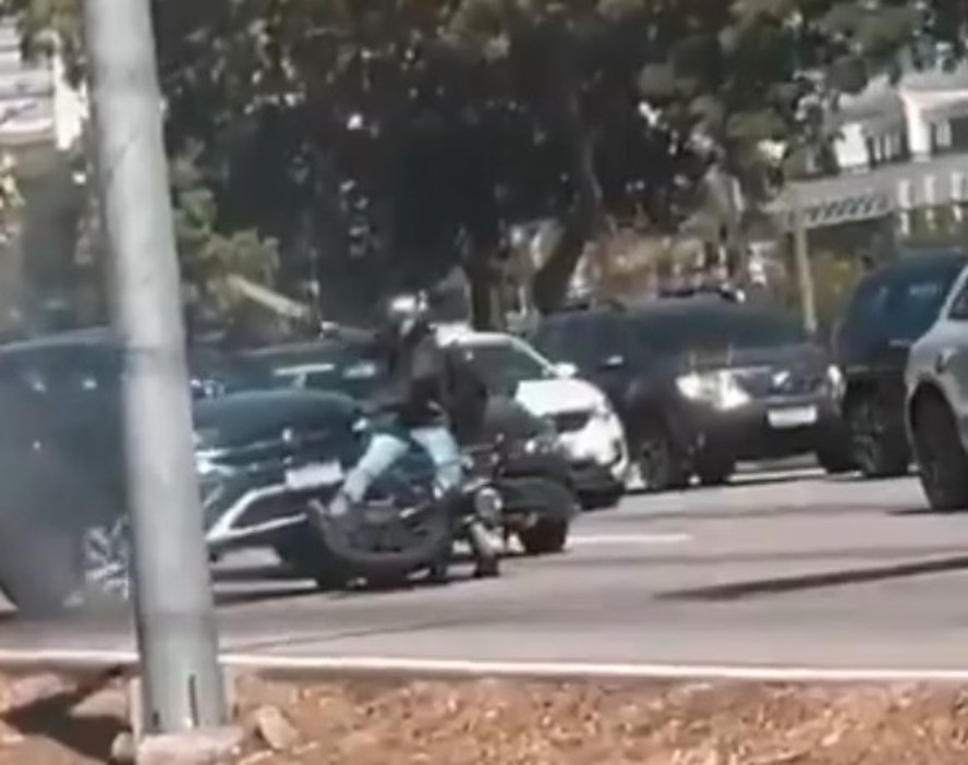 Discussão de trânsito envolvendo um policial civil em uma moto e um mecânico em um carro terminou em disparos à luz do dia nesta tarde na Avenida das Américas,na altura da Barra da Tijuca — Foto: Reprodução / redes sociais