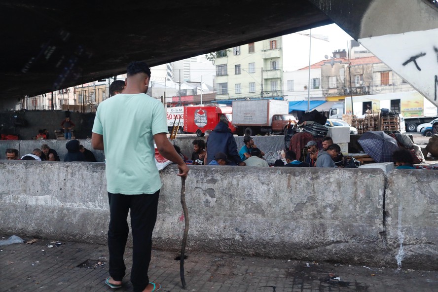 Sob o viaduto Vinte e Cinco de Março: mais de 50 usuários na região — Foto: Edilson Dantas / O Globo