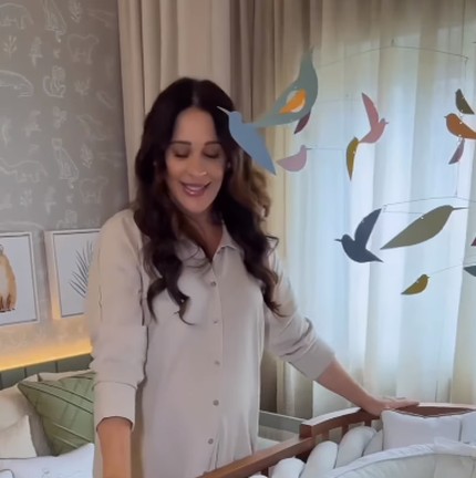 A atriz junto ao berço — Foto: Reprodução