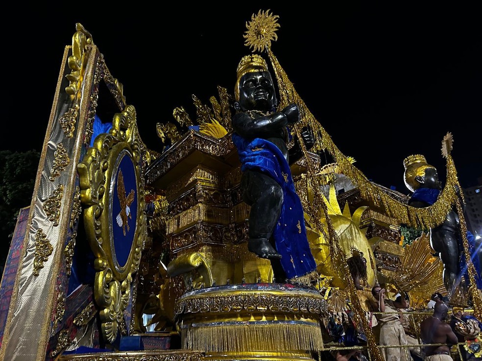 Anjos negros citados no samba-enredo adornam carro que terá Milton Nascimento como destaque — Foto: Rafaela Gama/ Agência O Globo