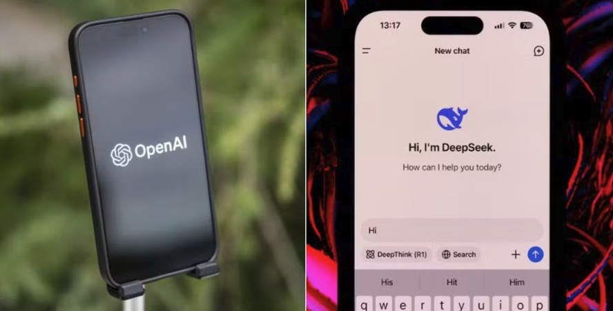 OpenAI e DeepSeek - montagem — Foto: Montagem