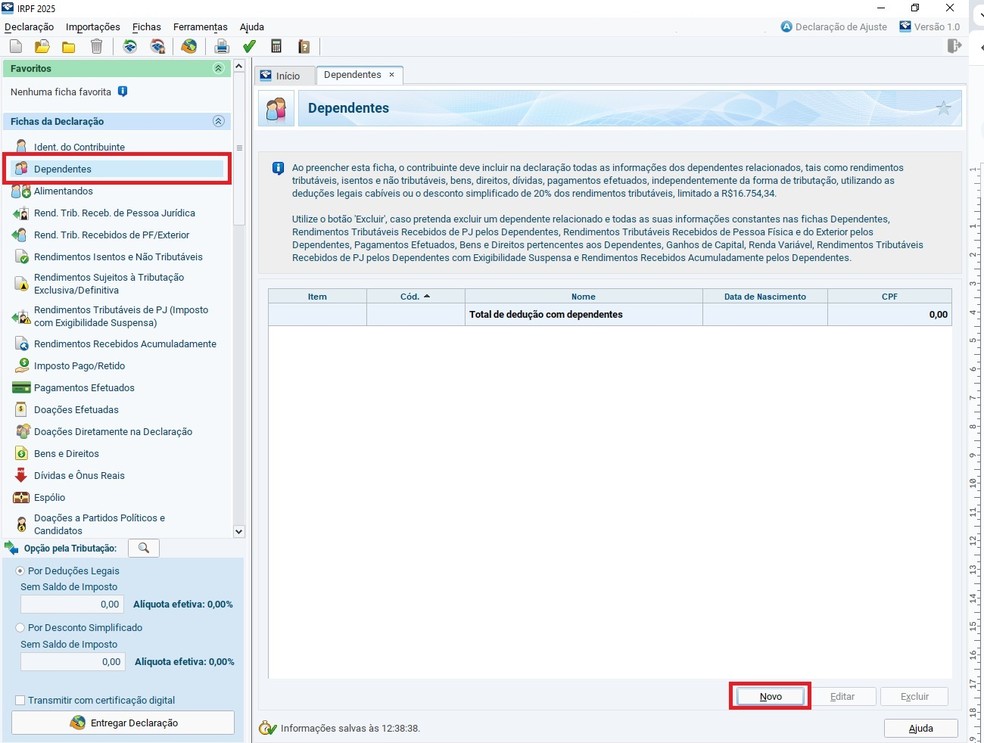 Os rendimentos de dependentes,caso existam,também precisam ser inclusos,mas na aba "Dependentes".