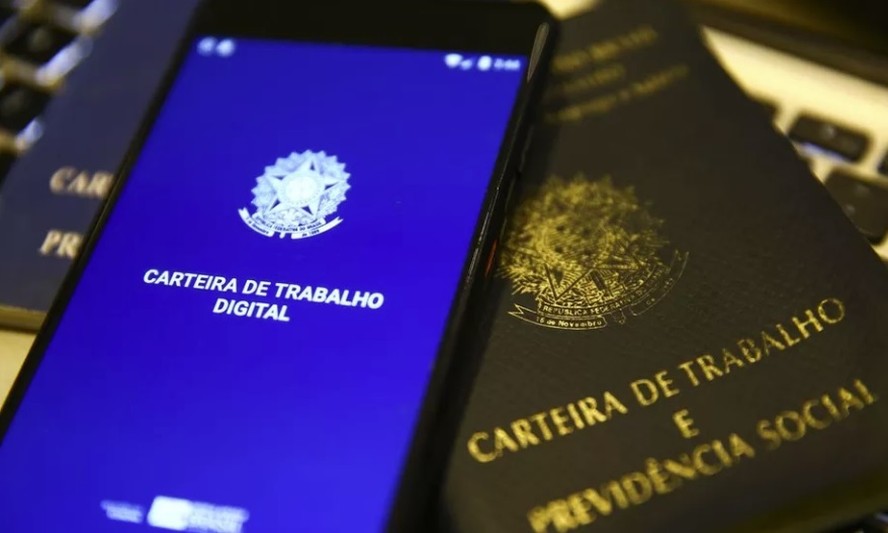 Carteira de trabalho física ao lado de uma carteira de trabalho digital — Foto: Agência O Globo
