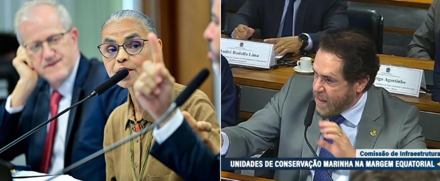 Marina Silva e Plínio Valério durante bate-boca em comissão do Senado — Foto: Agência Senado e reprodução