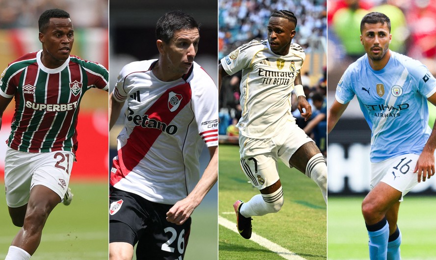 Fluminense,River Plate,Real Madrid e Manchester City — Foto: 1 - Francois Nel / GETTY IMAGES NORTH AMERICA / Getty Images via AFP,2 - Buda Mendes / GETTY IMAGES NORTH AMERICA / Getty Images via AFP,3 - PATRICIA DE MELO MOREIRA / AFP e 4 - David Ramos / GETTY IMAGES NORTH AMERICA / Getty Images via AFP