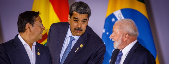 Lula e os presidentes da Venezuela,Nicolas Maduro,e Bolívia,Luís Acre — Foto: Brenno Carvalho / Agência O Globo.
