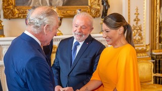 Presidente Lula e primeira-dama Janja são recebidos por Charles III em Buckingham — Foto: Reprodução/Twitter