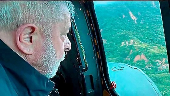 Lula sobrevoa São Sebastião,litoral de São Paulo,após região ser atinginda por fortes chuvas — Foto: Reprodução/ Instagram/ Lula