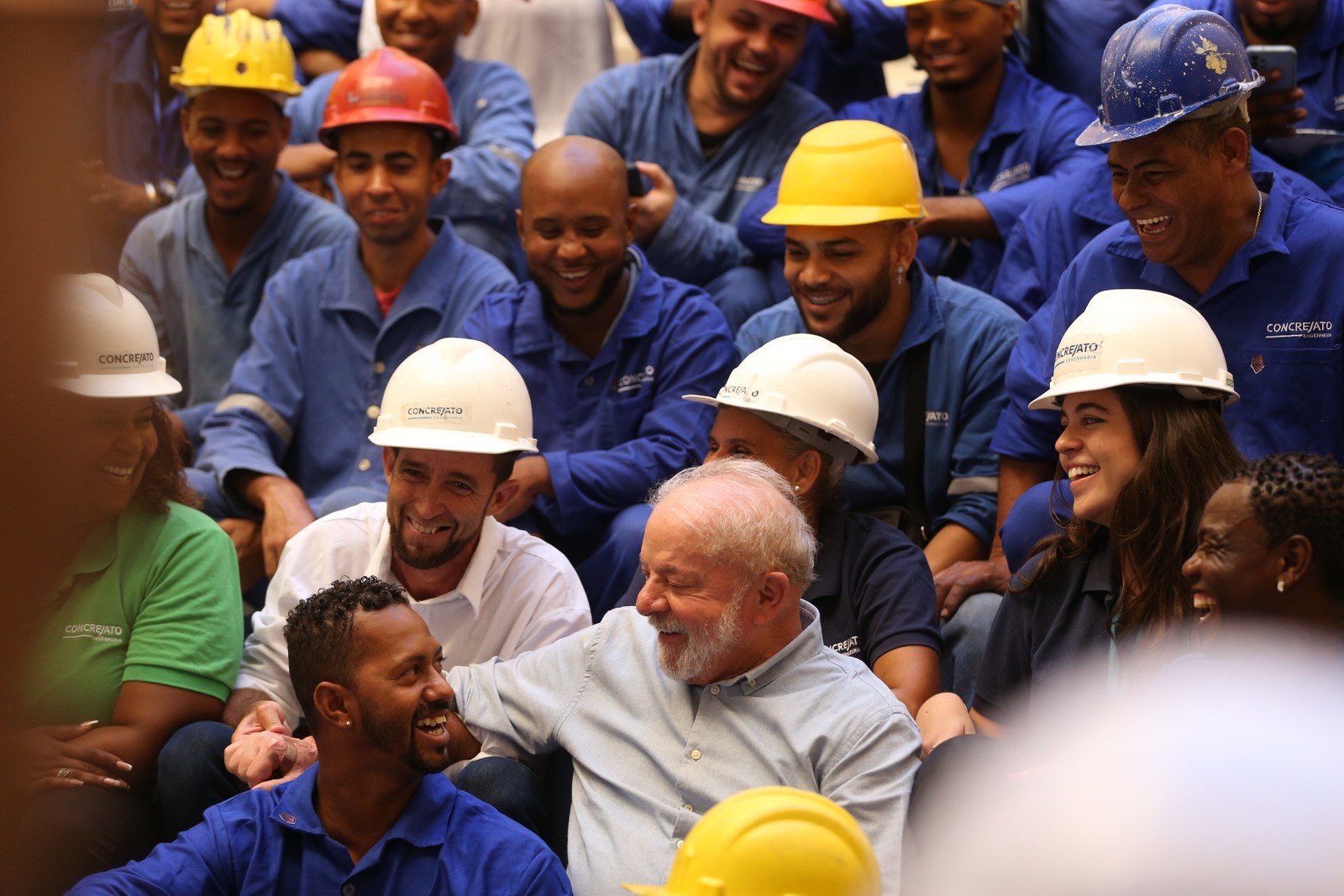 Lula posa para foto com operários durante visita ao Museu Nacional,que está sendo restaurado após incêndio — Foto: Alexandre Cassiano