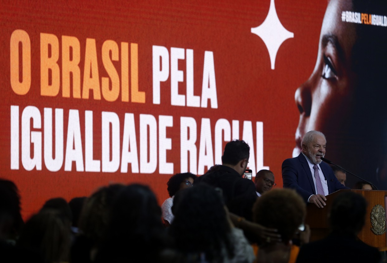 Lula durante solenidade sobre políticas de igualdade racial no Brasil — Foto: Cristiano Mariz