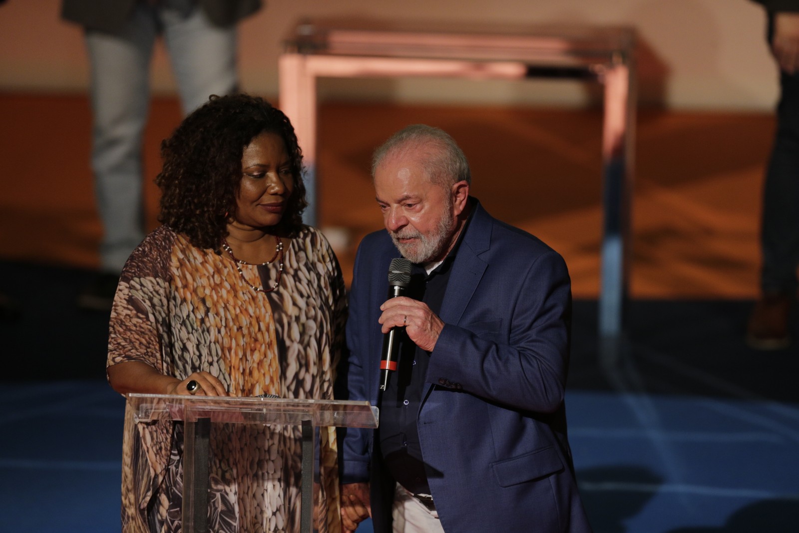 Lula e e a ministra do Esporte,Ana Moser,durante apresentação da Taça da Copa do Mundo de Futebol Feminino — Foto: Marcelo Camargo/Agência Brasil
