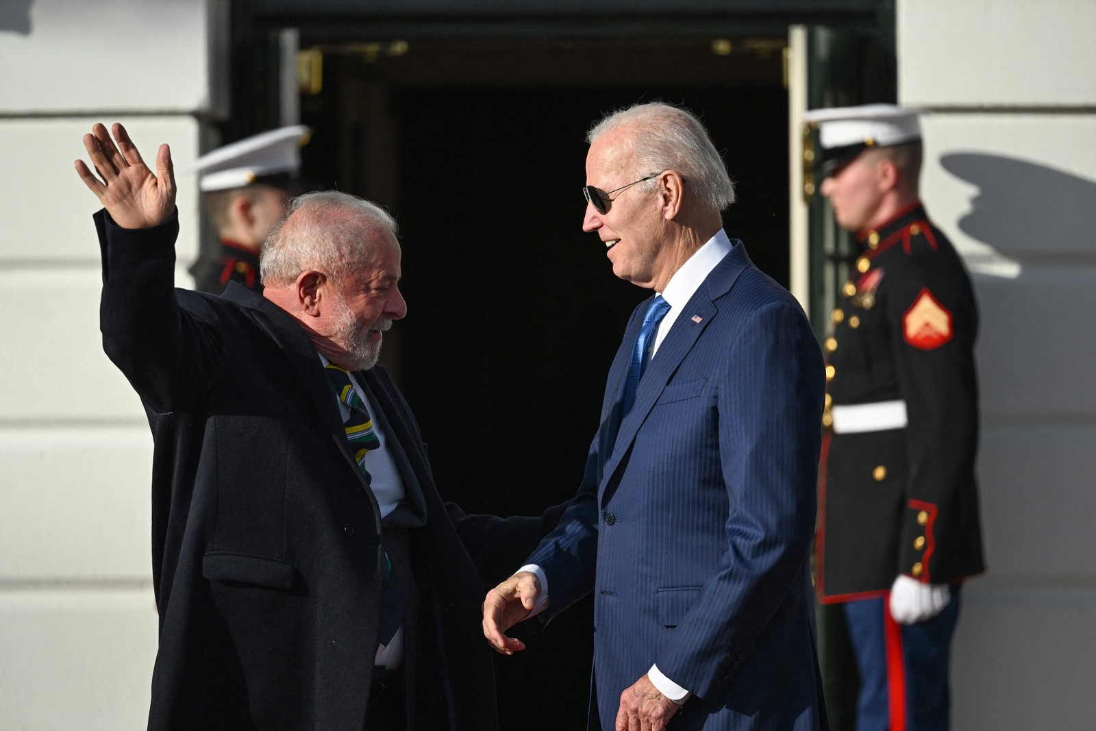 Lula é recebido por Biden — Foto: ANDREW CABALLERO-REYNOLDS / AFP