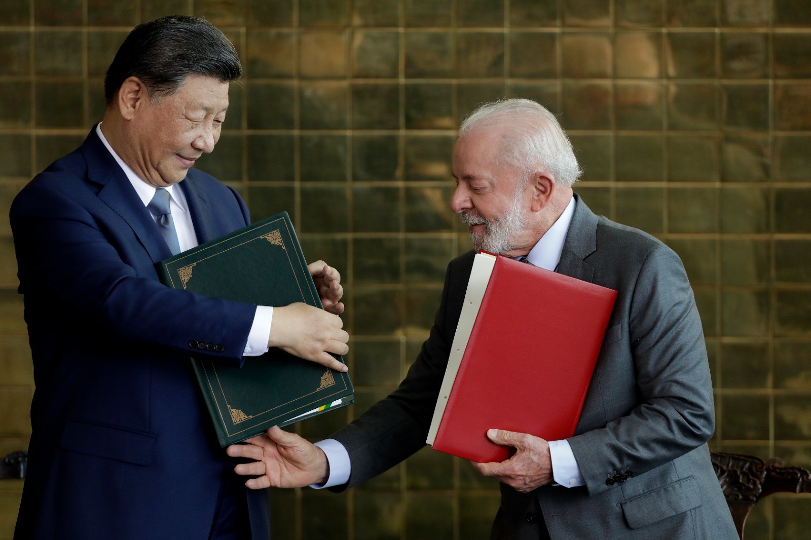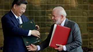 Lula e o presidente da China,Xi Jinping,assinam acordos após reunião no Palácio da Alvorada — Foto: Cristiano Mariz/Agência O Globo
