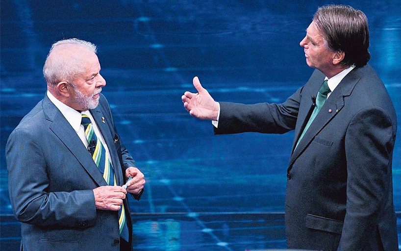Lula e Bolsonaro em debate na eleição de 2022 — Foto: NELSON ALMEIDA / AFP/ 1-10-2022