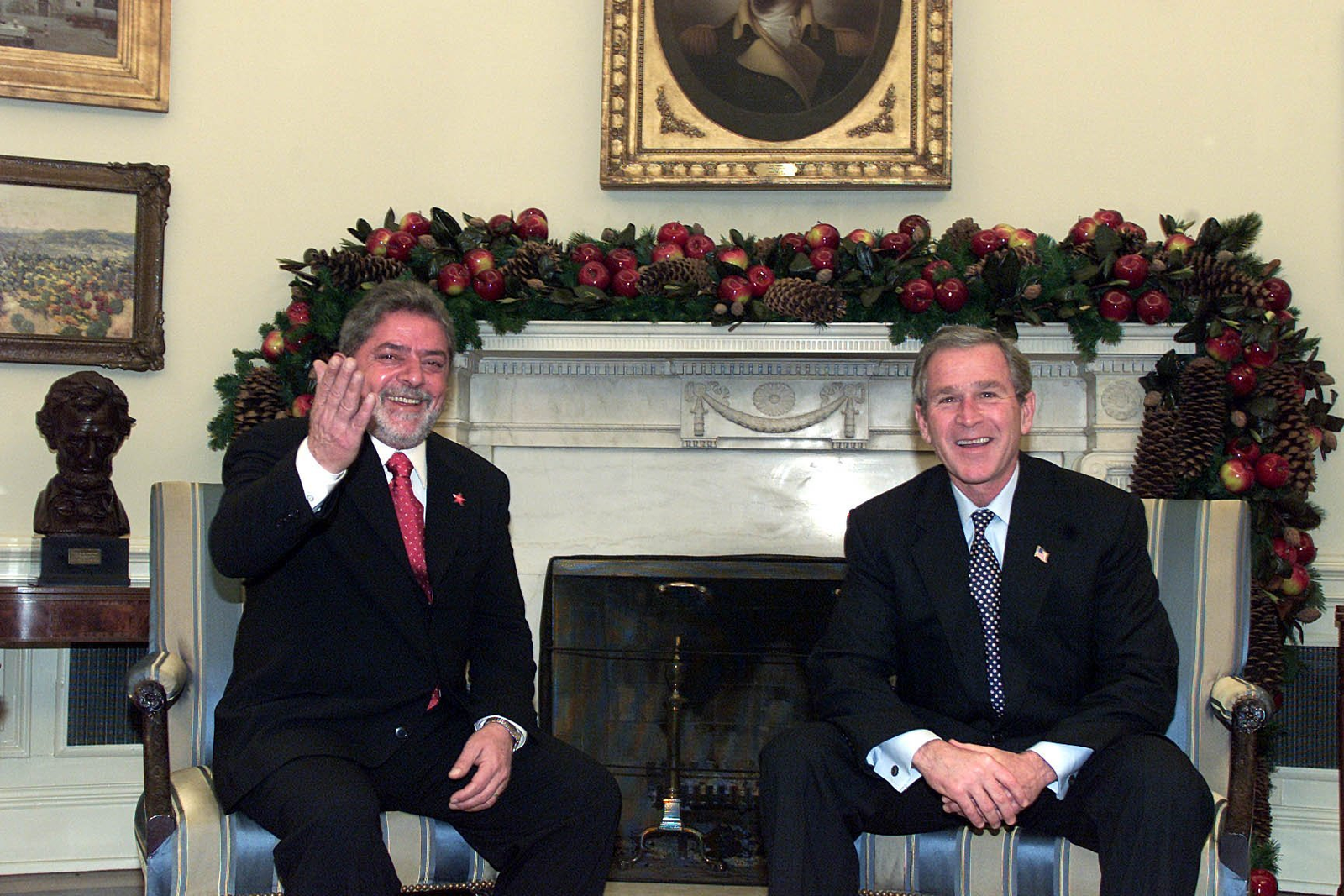 Lula em encontro com o então presidente dos Estados Unidos,George W. Bush,na Casa Branca,em 2002 — Foto: Roberto Stuckert Filho