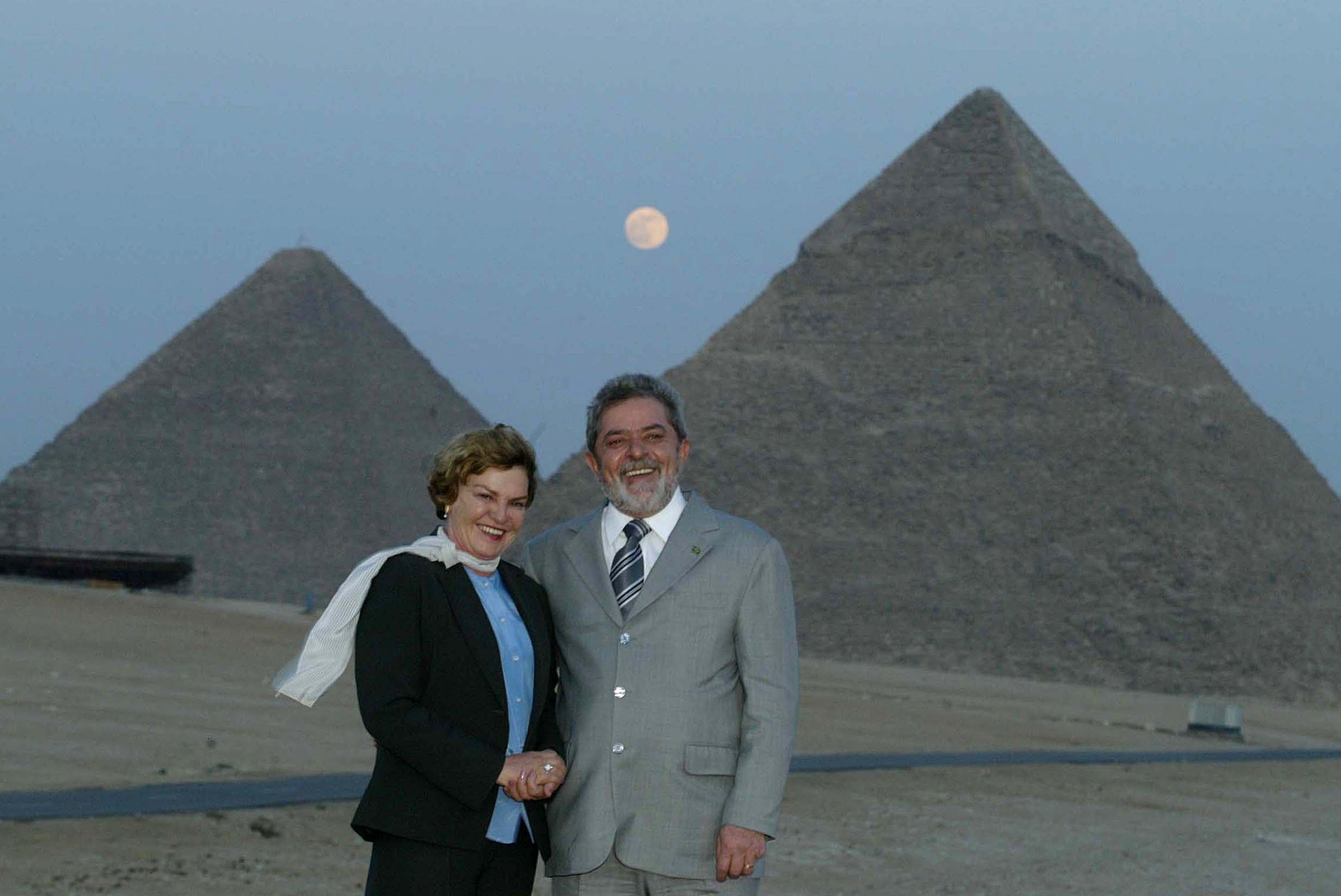 Lula e Dona Marisa durante visita as Pirâmides de Gize na cidade do Cairo,no Egito — Foto: Roberto Stuckert Filho