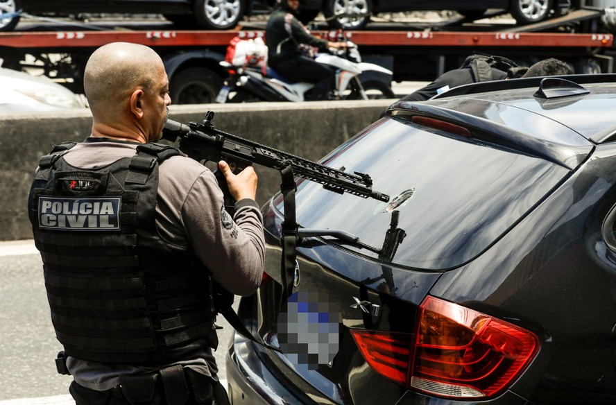 — A BMW foi apreendida no Complexo da Maré. Ela tinha seteiras nas suas laterais e na sua parte traseira,que serviam para colocar as armas de fogo,principalmente fuzis,para poderem praticar roubo de cargas. Esse veículo já era procurado pela DRFC e pela Delegacia de Roubos e Furtos de Automóveis. Sabíamos que ele estava sendo usado para praticar roubos de alto valor econômico,e até mesmo ataques a carro forte. Conseguimos fazer a apreensão e tirar das mãos dessa quadrilha o uso desse veículo BMW. O carro era roubado e ostentava placa clonada— disse o delegado,acrescentando que o carro havia sido roubado há seis meses.