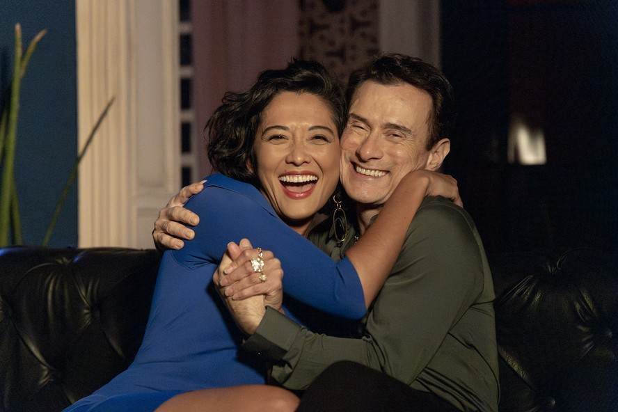 Jacqueline Sato e Enrique Diaz como Yuki e Gerson — Foto: Globo/ Beatriz Damy