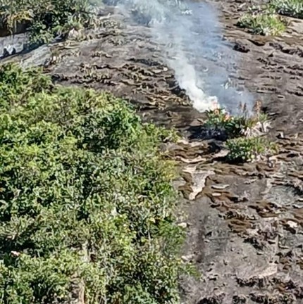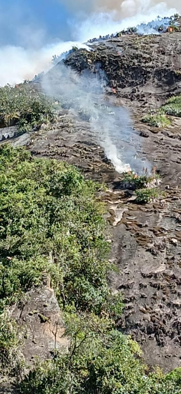 Incêndio no Pavão-Pavãozinho provoca queda de pedaços de rocha e densa fumaça