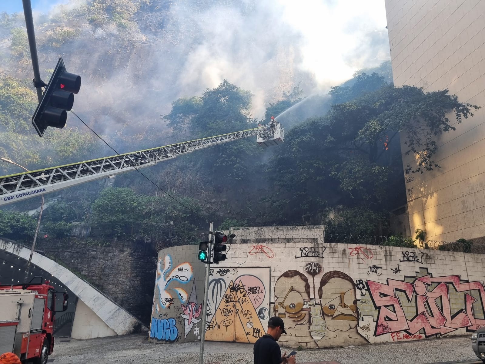 — Acima do túnel que existe ali (Sá Freire Alvim) está o Santuário de Nossa Senhora das Graças — diz Magalhães. — O local afetado é de difícil acesso,o que tem dificultado o trabalho dos bombeiros e dos agentes da prefeitura,que estão empenhados em controlar as chamas e garantir a segurança da comunidade. As equipes continuam no local,monitorando a situação e trabalhando para conter o incêndio e prevenir novos riscos.