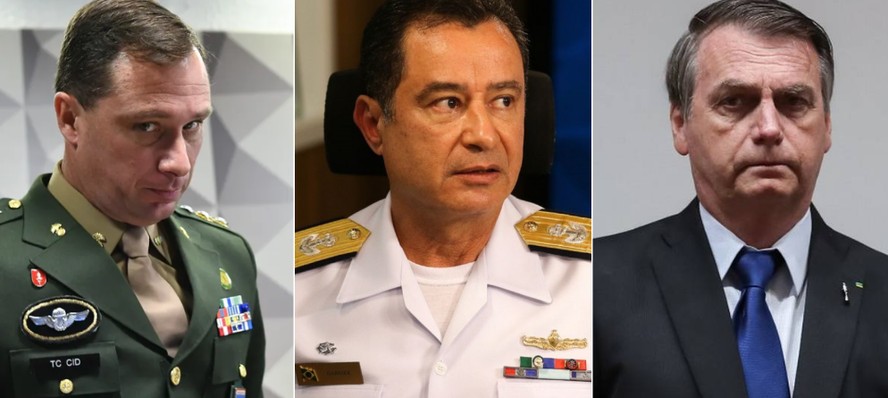 Mauro Cid,almirante Garnier e Jair Bolsonaro — Foto: Reprodução/ Agência Câmara e Agência Brasil
