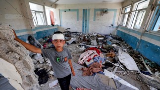 O Exército israelense assumiu,nesta quinta-feira,que bombardeou uma escola da Agência da ONU para Refugiados Palestinos (UNRWA),na Faixa de Gaza. Segundo os militares,a sede abrigava "uma base" do movimento islâmico Hamas. Bombardeio deixou pelo menos 39 mortos e numerosos feridos. — Foto: Eyad BABA / AFP