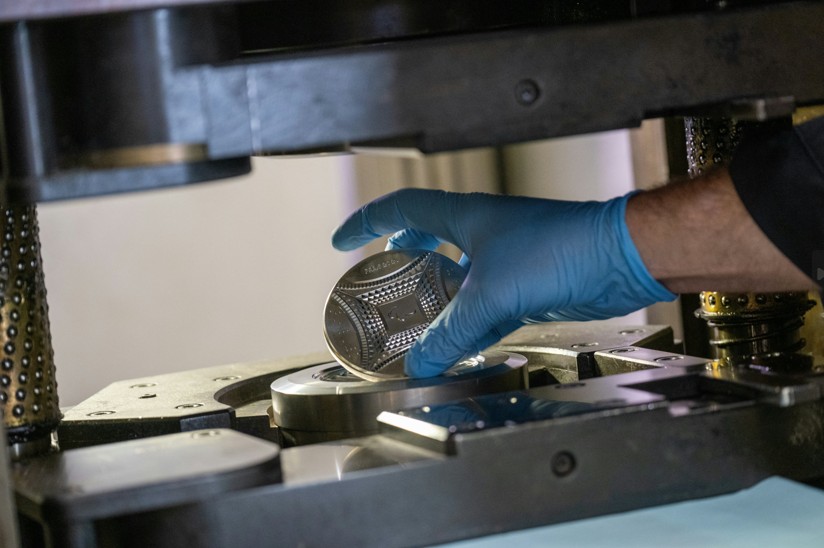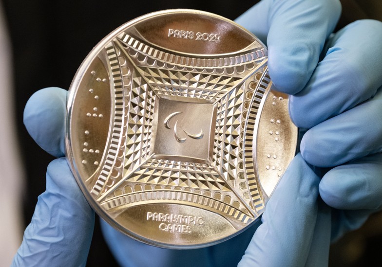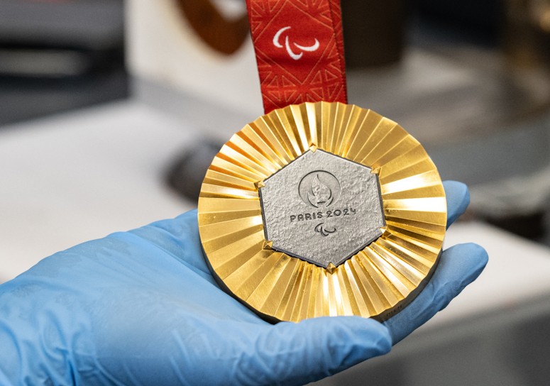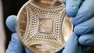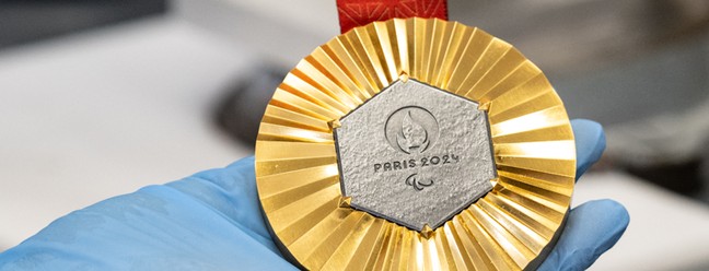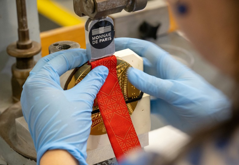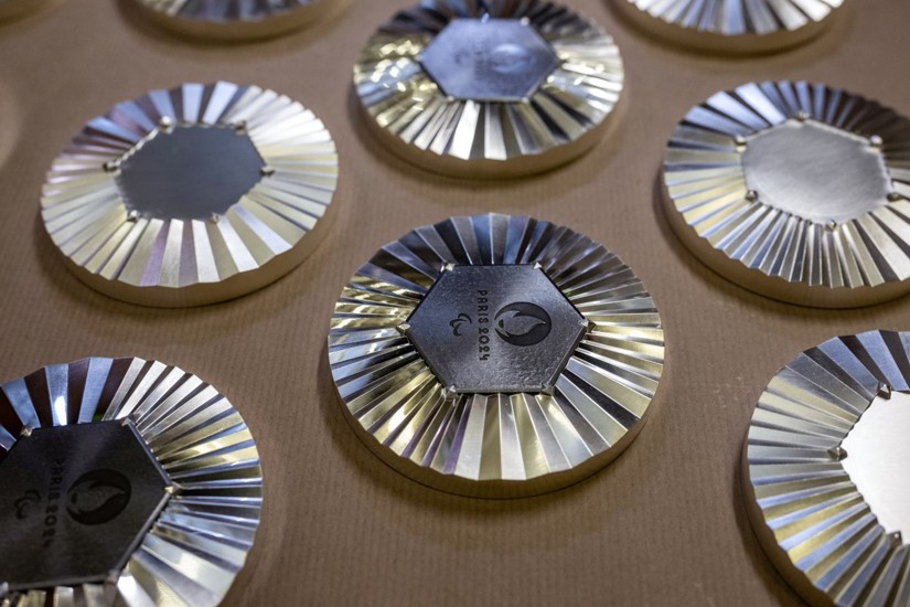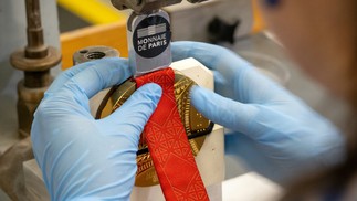 Detalhe da preparação de medalha de Paris-2024 — Foto: AFP