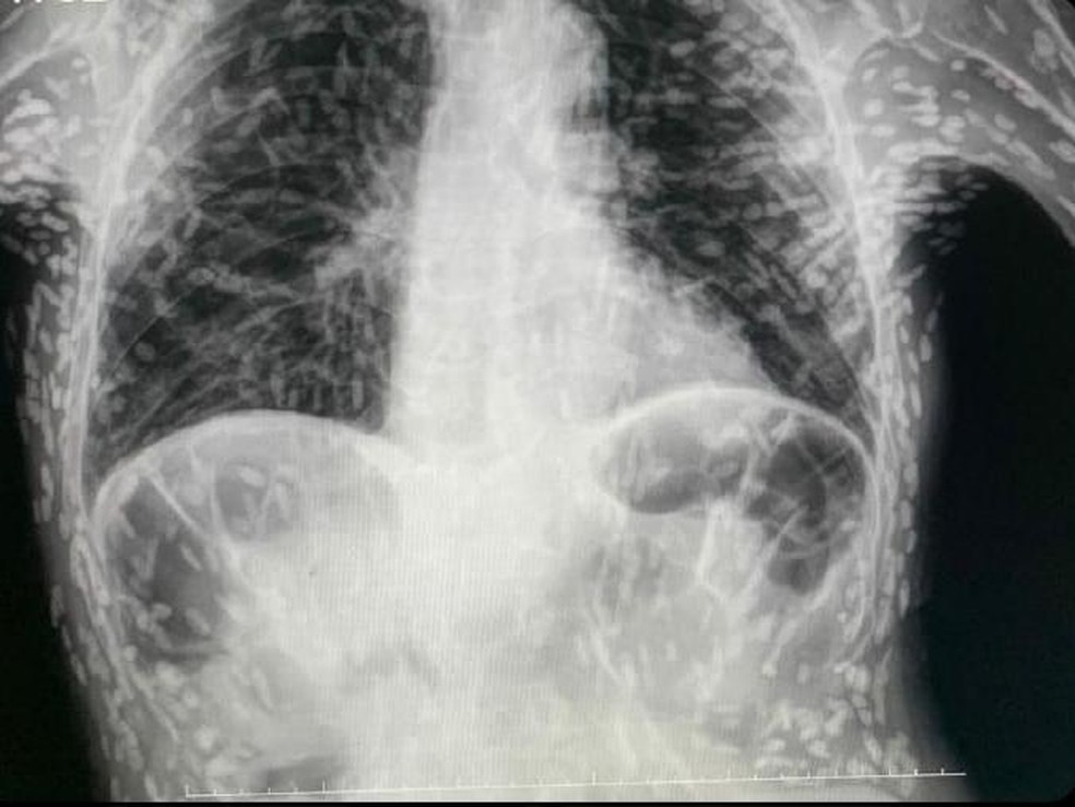 Os ovos de tênia encontrados no tórax já estavam mortos e calcificados,já não apresentavam riscos — Foto: Reprodução/ Twitter