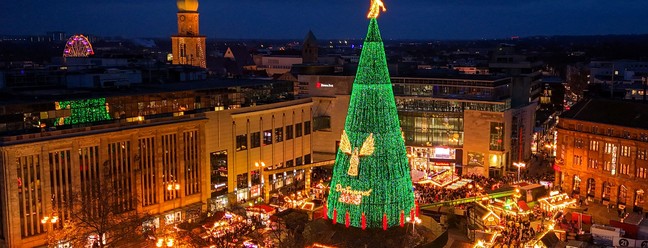 Em Dortmund,na Alemanha,o mercado tem uma árvore de Natal de 45 metros de altura,uma das maiores do mundo — Foto: Ina Fassbender/AFP