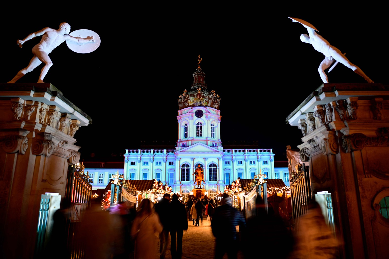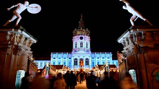 Visitantes entram no mercado de Natal no Palácio Charlottenburg,em Berlim,na Alemanha — Foto: Tobias Schwarz/AFP