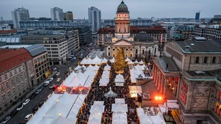 Imagem aérea dá a dimensão do tamanho do Gendarmenmarkt,um dos mercados de Natal de Berlim,na Alemanha — Foto: John MacDougall/AFP