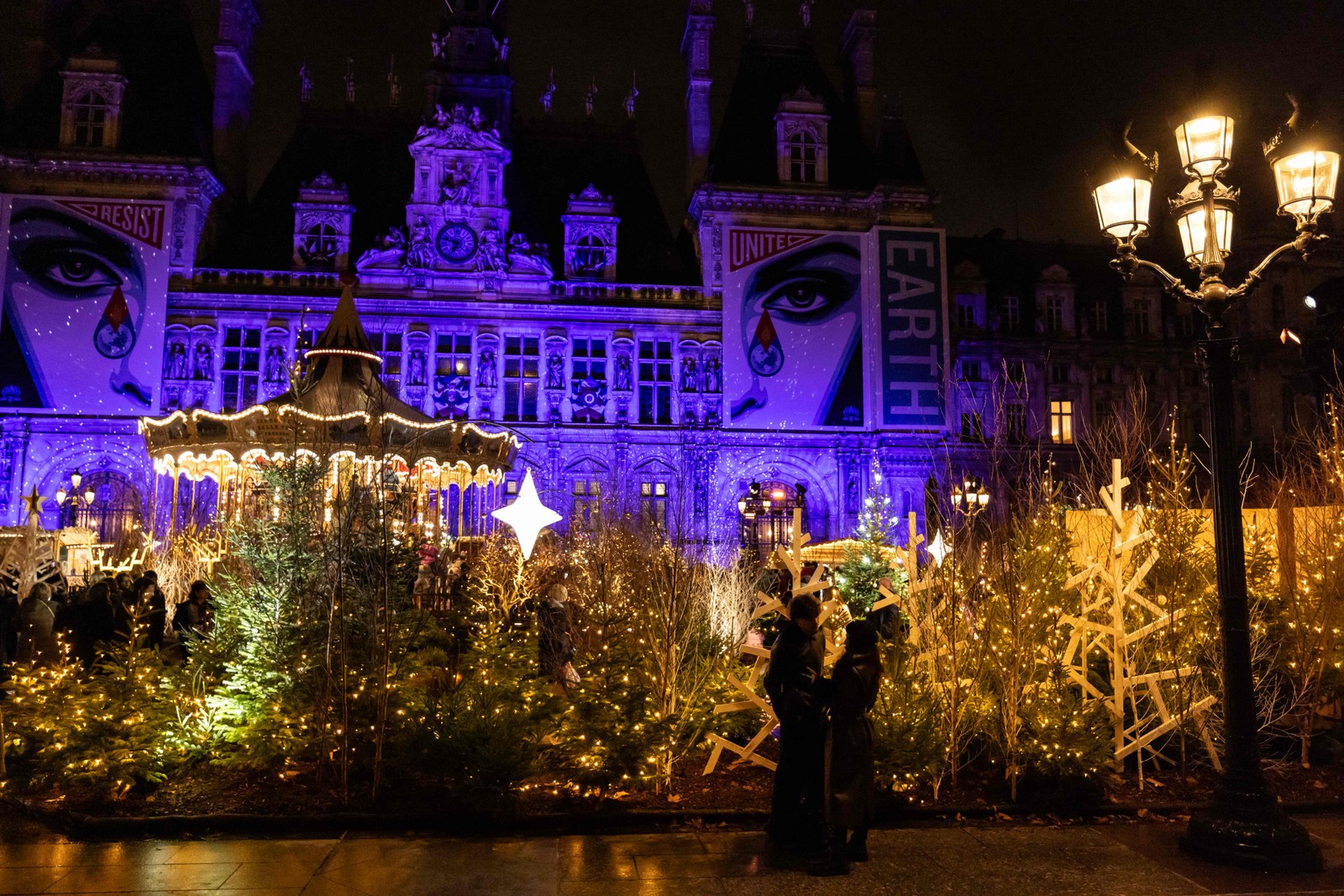 Decoração de Natal montada em frente à prefeitura de Paris,na França — Foto: Ian Langsdon/AFP