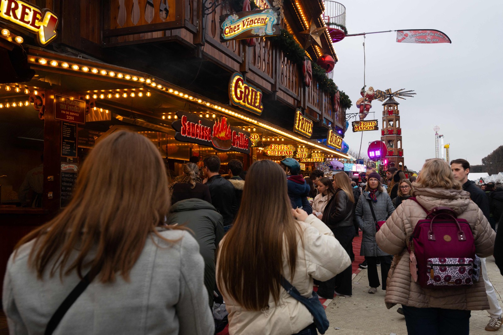 Visitantes fazem fila para comprar comida numa das barracas do mercado de Natal do Jardim das Tulherias,em Paris,na França — Foto: Anna Kurth/AFP