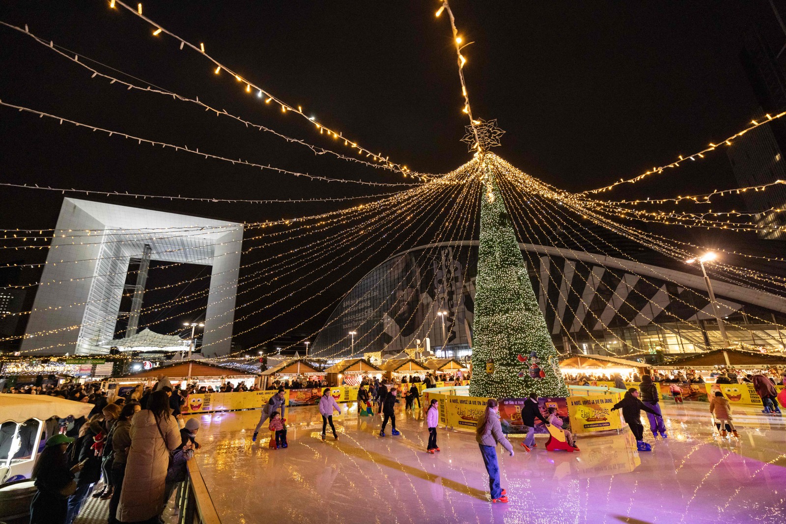 Rinque de patinação no mercado de Natal da estação de trem Parvis de la Defense,na cidade de Puteaux,nos arredores de Paris,na França — Foto: Ian Langsdon/AFP